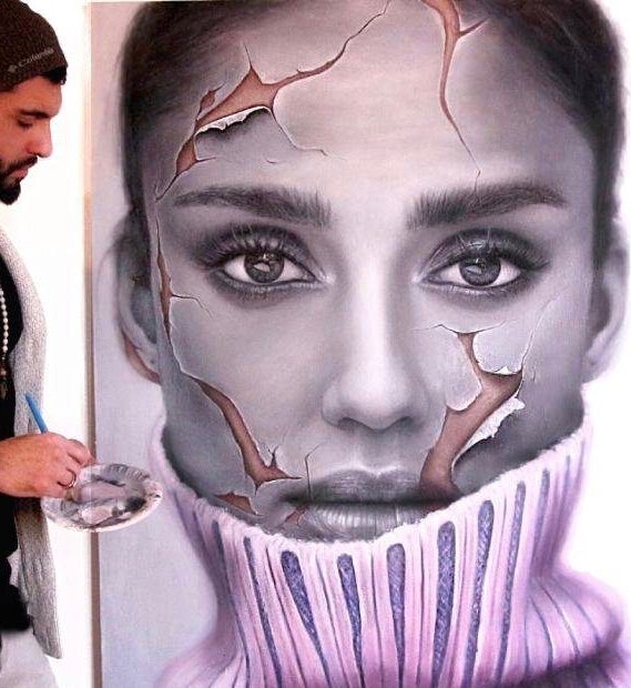 Samuel Hagai’s journey embodies this tension in vivid color. Born in 1982 in Kfar Yona, Israel, Hagai began painting at age 12, developing what would become his signature approach: a striking fusion of hyper-realism and surrealism rendered in dramatic black-and-white schemes punctuated by explosive bursts of vibrant color. His technique of “peeling away the layers” of portraits—revealing hidden depths beneath surface appearances—served as both artistic method and philosophical statement. For years, his work inhabited the liminal spaces of urban landscapes, where graffiti has always belonged: walls that nobody owns and everybody sees.